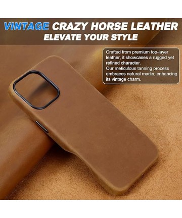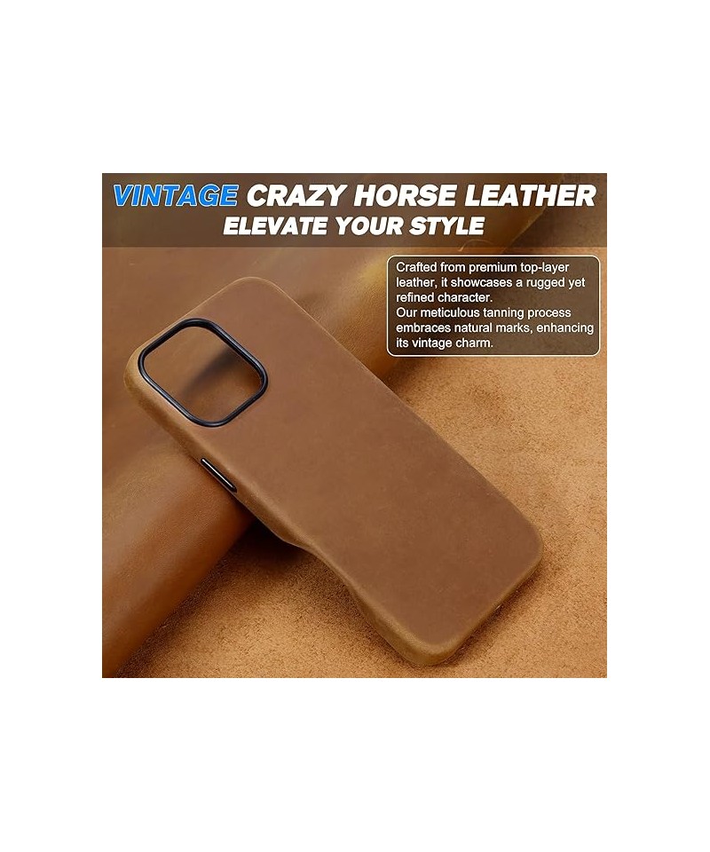 Husele din piele pentru iPhone 16 Pro Max sunt realizate din piele de vacă ceară cu ceară, în stil Crazy Horse.