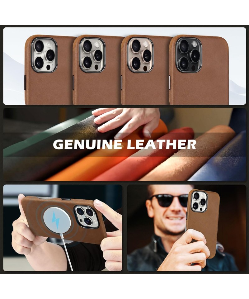 Carcasa din piele pentru IPHONE 16 Pro Max, maro
