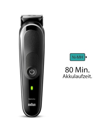 Acest set de îngrijire corporală pentru bărbați conține o baterie puternică NiMH cu 80 de minute de funcționare wireless și se poate spăla sub jet de apă.