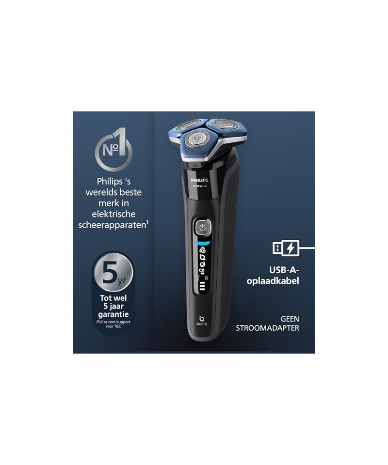 De la brandul #1 pentru aparate de ras electrice¹ cu 5 ani de garanție: Philips Shaver Series 7000 cu tehnologia SkinIQ alunecă lin pe pielea dvs. în timp ce tunde fiecare fir de păr, chiar și pe barbă de 3 zile.