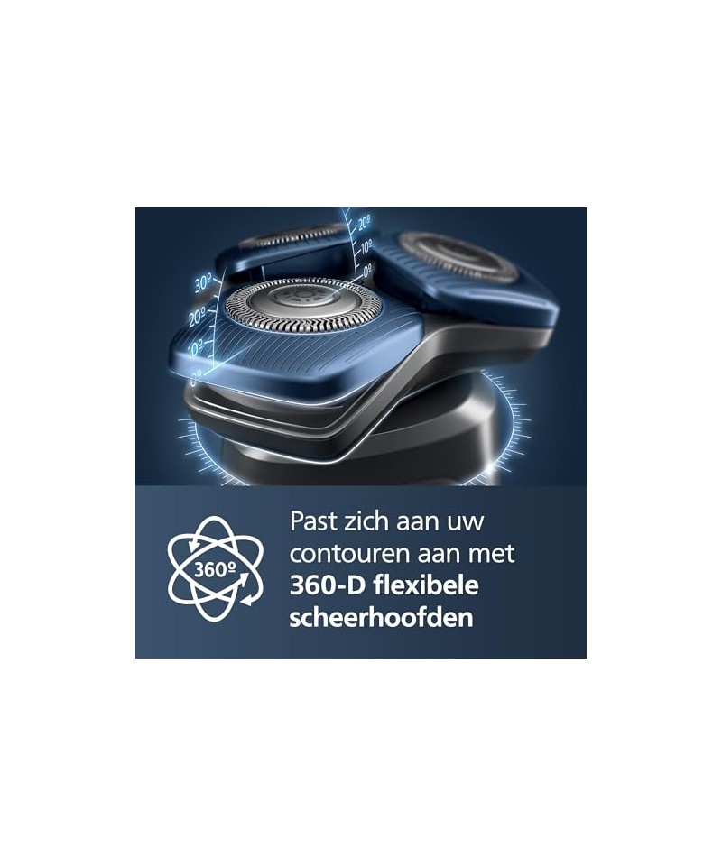 Experimentați confort optim al pielii datorită capetelor de ras complet flexibile care se rotesc la 360 de grade pentru a urma contururile feței dvs. pentru o bărbierit temeinică și confortabilă.