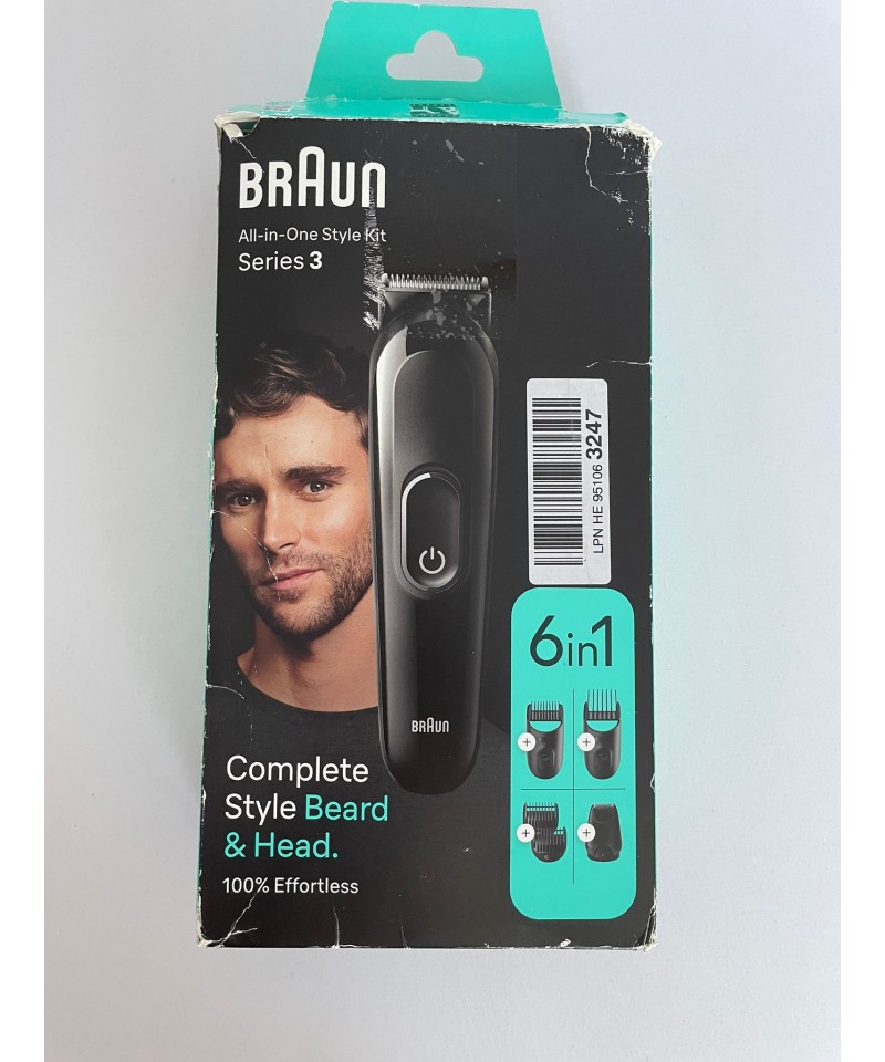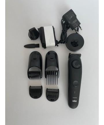 Conținutul cutiei: 1 x aparat de tuns, 1 x aparat de ras mini cu grilă, 1 x pieptene glisant pentru barbă (3 până la 11 mm), 1 x pieptene glisant pentru păr (13 până la 21 mm), 1 x pieptene fix standard (1 mm), 1 x pieptene fix standard (3 mm).