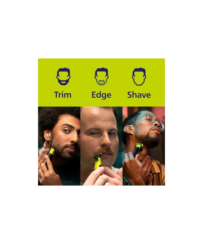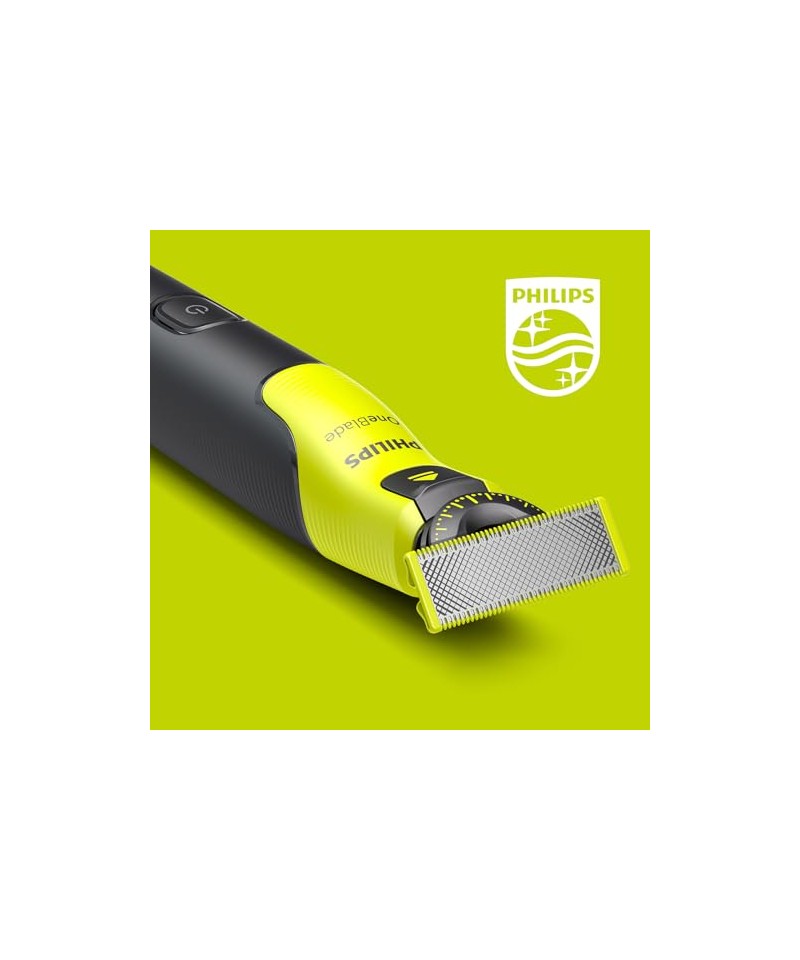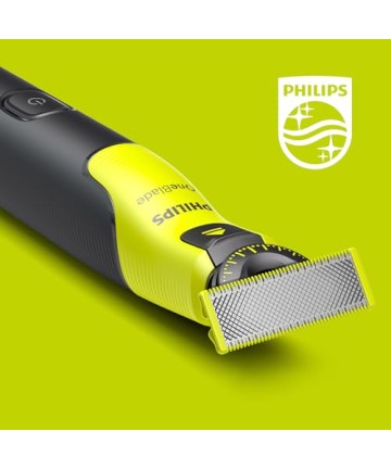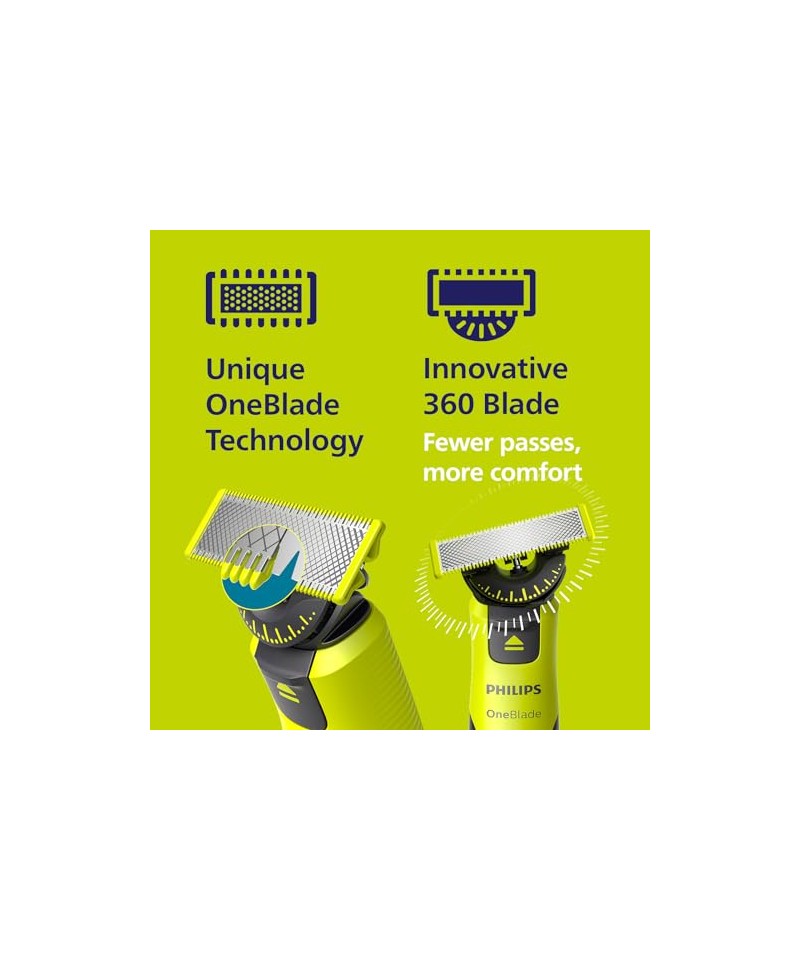 Tehnologia OneBlade: unitate de tăiere rapidă (12.000 min), eficientă chiar și pe părul lung și sistem dual de protecție cu înveliș lubrifiant și vârfuri rotunjite pentru o mai mare confort