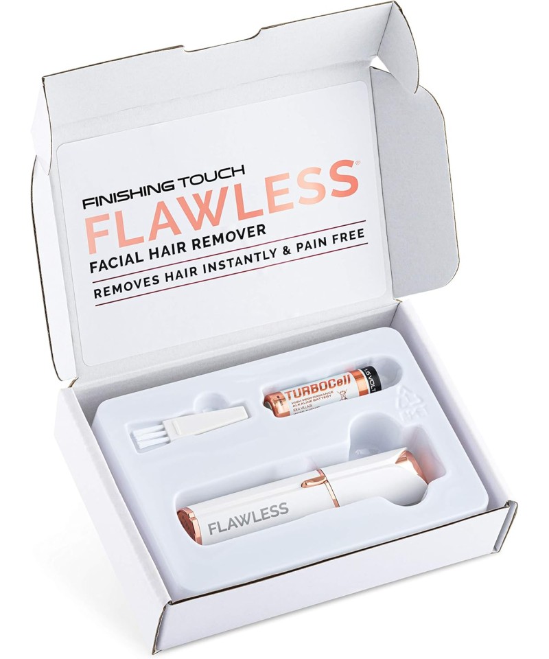 Finishing Touch Flawless Face îndepărtează indoloros și cu precizie microscopică părul de pe buza superioară, bărbie sau obraji.