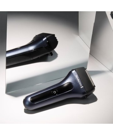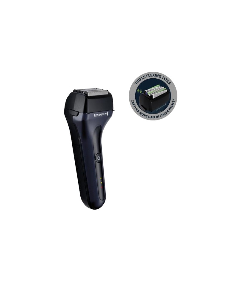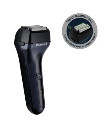 FOLII DE RAS TRI-FLEX - Aparat de ras electric cu litiu pentru bărbați, cu foi de ras tri-flex, care captează mai multe fire de păr în mai puține treceri (comparativ cu aparatele de ras convenționale Remington cu două foi).