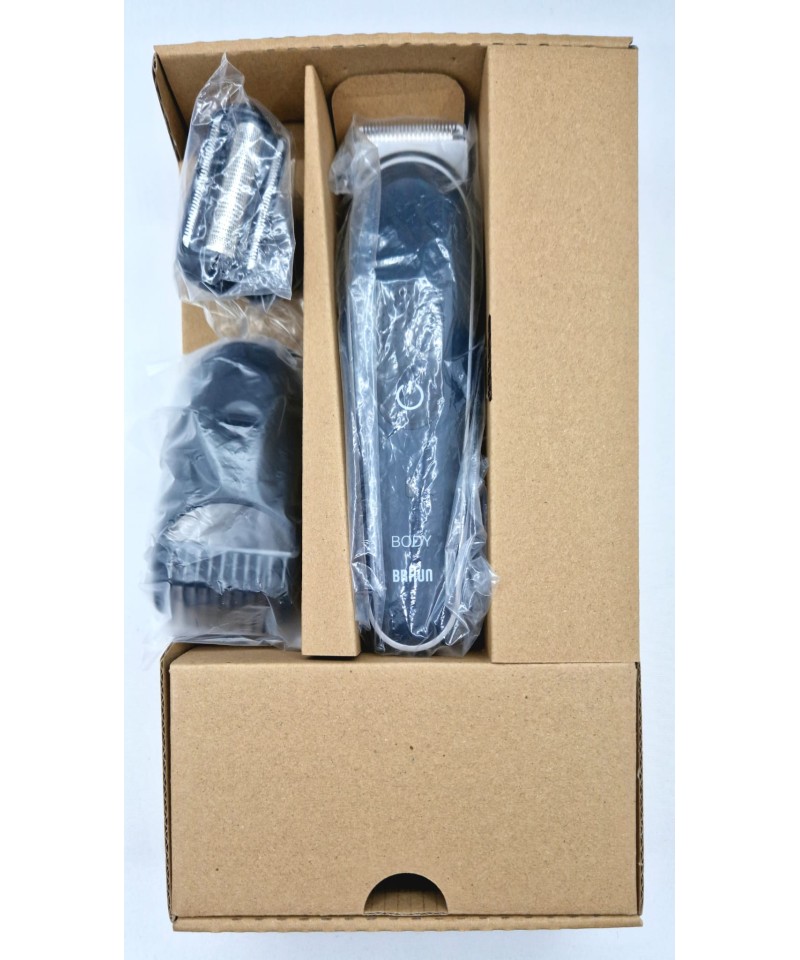 Cutia include: 1x dispozitiv de ingrijire a corpului, inclusiv cap de tuns pentru o gradatie fina, 1x accesoriu pentru pieptene sensibil, 1x accesoriu pentru pieptene glisant (3 - 11 mm), 1x accesoriu pentru barbierit neted, 1x husa de depozitare