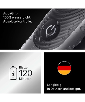 Baterie rezistentă la apă și de lungă durată - Complet impermeabilă pentru utilizare la duș, cu AquaGrip pentru control suplimentar, plus bateria puternică Li-Ion care oferă până la 120 de minute de tundere fără fir.