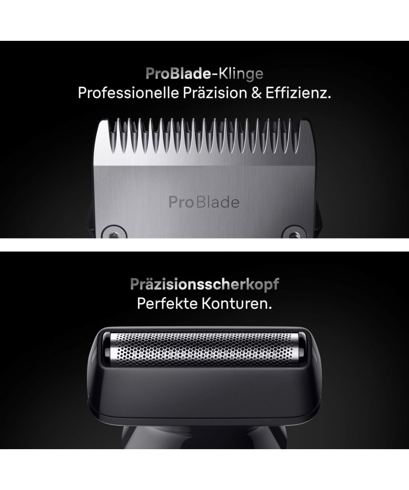 ProBlade ultra ascuțit cu tehnologie AutoSense - Obține o îngrijire precisă și fără efort cu ProBlade, care se adaptează la orice grosime a bărbii, utilizând AutoSense pentru o putere de tăiere constantă pe toate tipurile de păr.