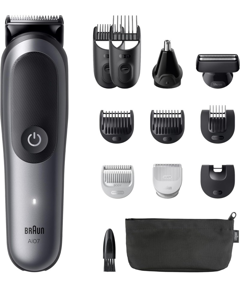 Kit de îngrijire 12 în 1 pentru bărbați - Tunde, rade și coafează din cap până în picioare cu cel mai versatil kit de îngrijire de la Braun, inclusiv instrumente pentru tuns barba, tuns părul, îngrijirea corpului, epilarea părului din urechi și nas.