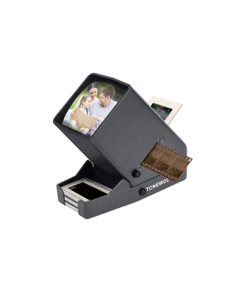 Vizualizatorul de diapozitive și filme TCNEWCL FS521 este un dispozitiv compact, portabil, care oferă o mărire de 3X, permițându-vă să măriți și să iluminați diapozitive de 2X2" și film de 35 mm pentru o experiență de vizionare clară și detaliată.