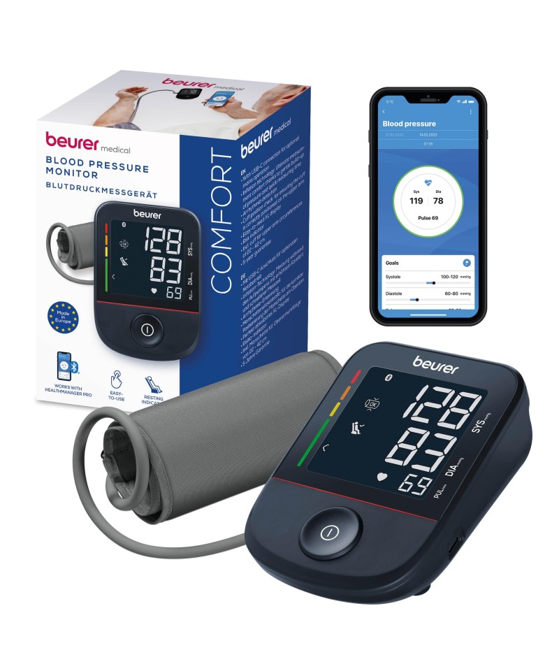 - Conectare prin Bluetooth® la aplicația gratuită „beurer HealthManager Pro”