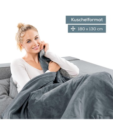 Pufoasă și confortabilă: pătura este fabricată dintr-un material exterior moale și pufos, care te invită la visare - datorită dimensiunilor de 180 x 130 cm, pătura este perfectă pentru a te cuibări.