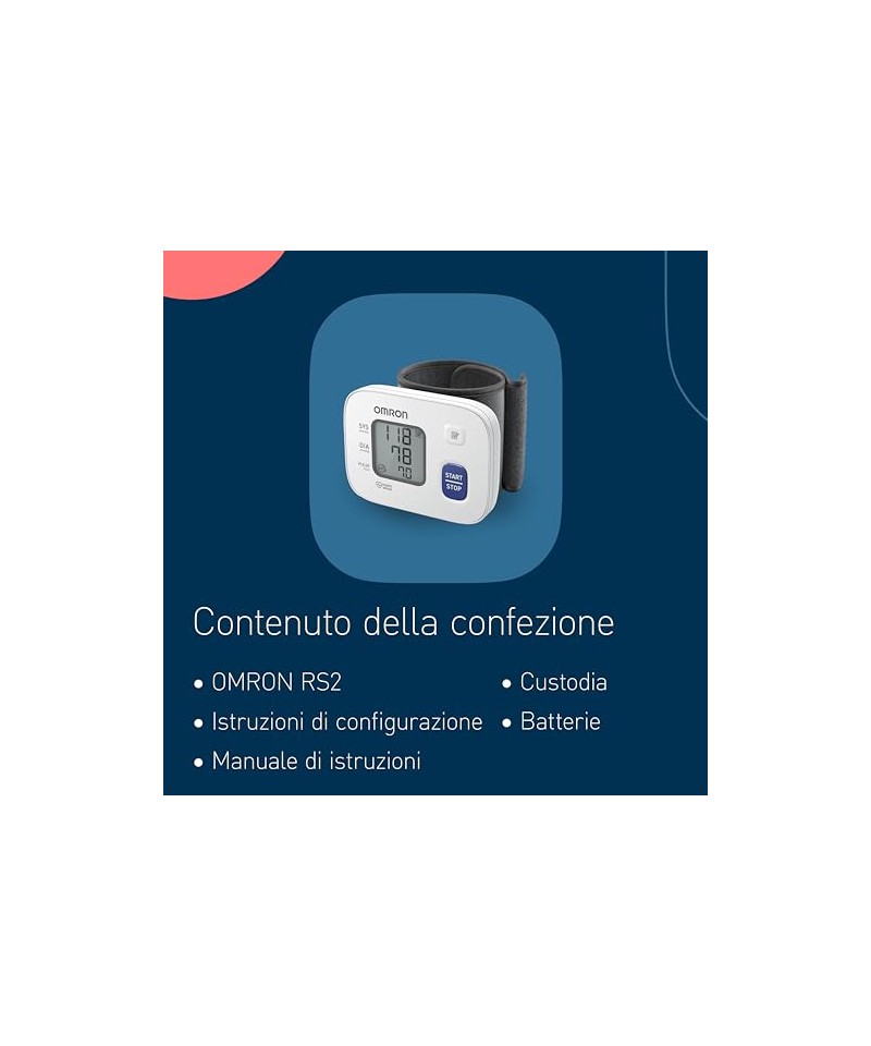 Conținut: tensiometru RS2, manual de instrucțiuni, jurnal de tensiune arterială, baterii și husă de transport.