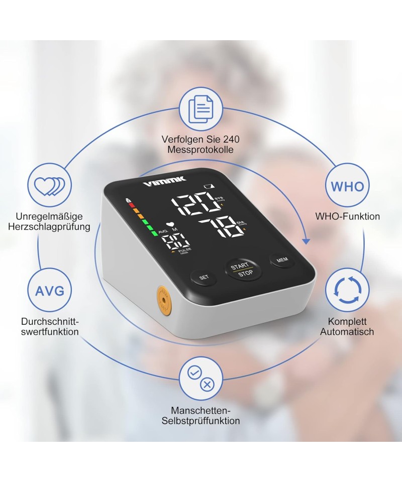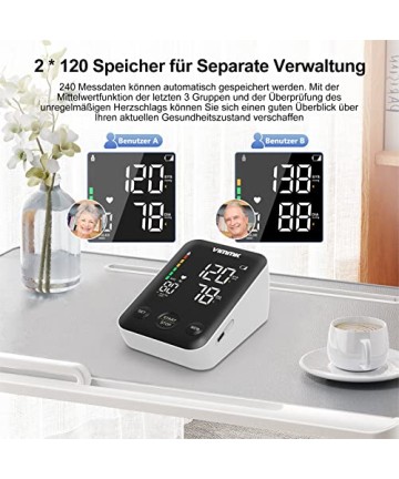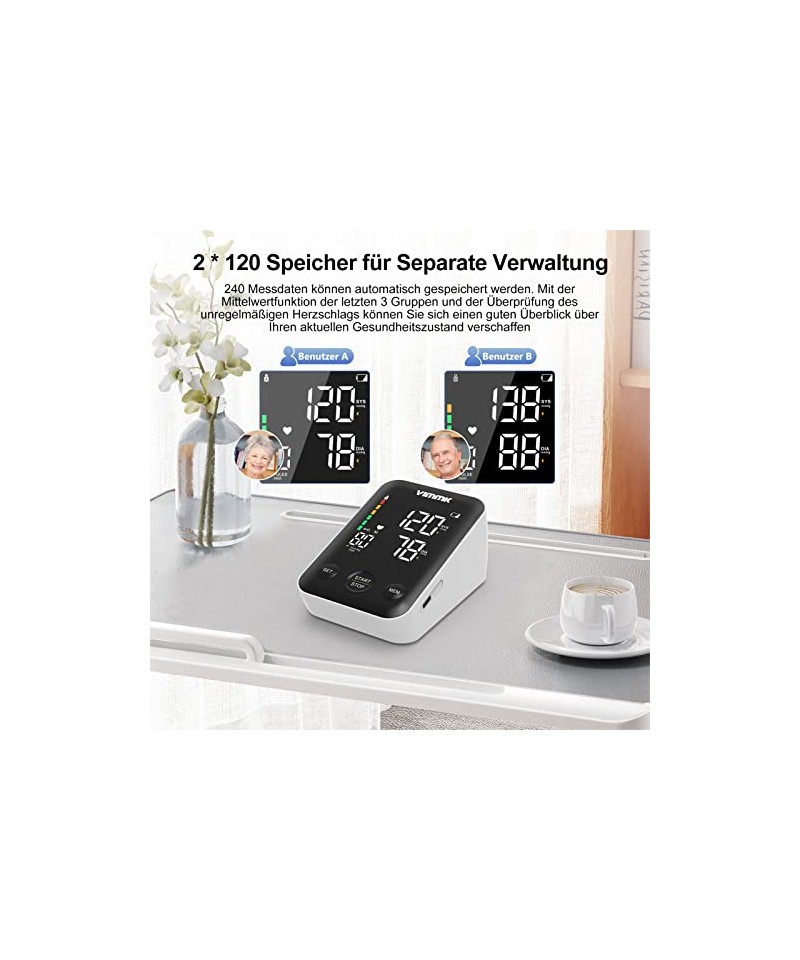 240 de valori stocate vă permit să vă monitorizați tensiunea arterială: Acest monitor de tensiune arterială poate salva automat 240 de rezultate. Fiecare unitate stochează 120 de seturi de citiri pentru doi utilizatori, astfel încât să vă puteți monitoriza convenabil tensiunea arterială în orice moment. Cu funcția medie a ultimelor 3 grupe și verificarea bătăilor neregulate ale inimii, puteți obține o imagine de ansamblu asupra stării dumneavoastră actuale de sănătate.
