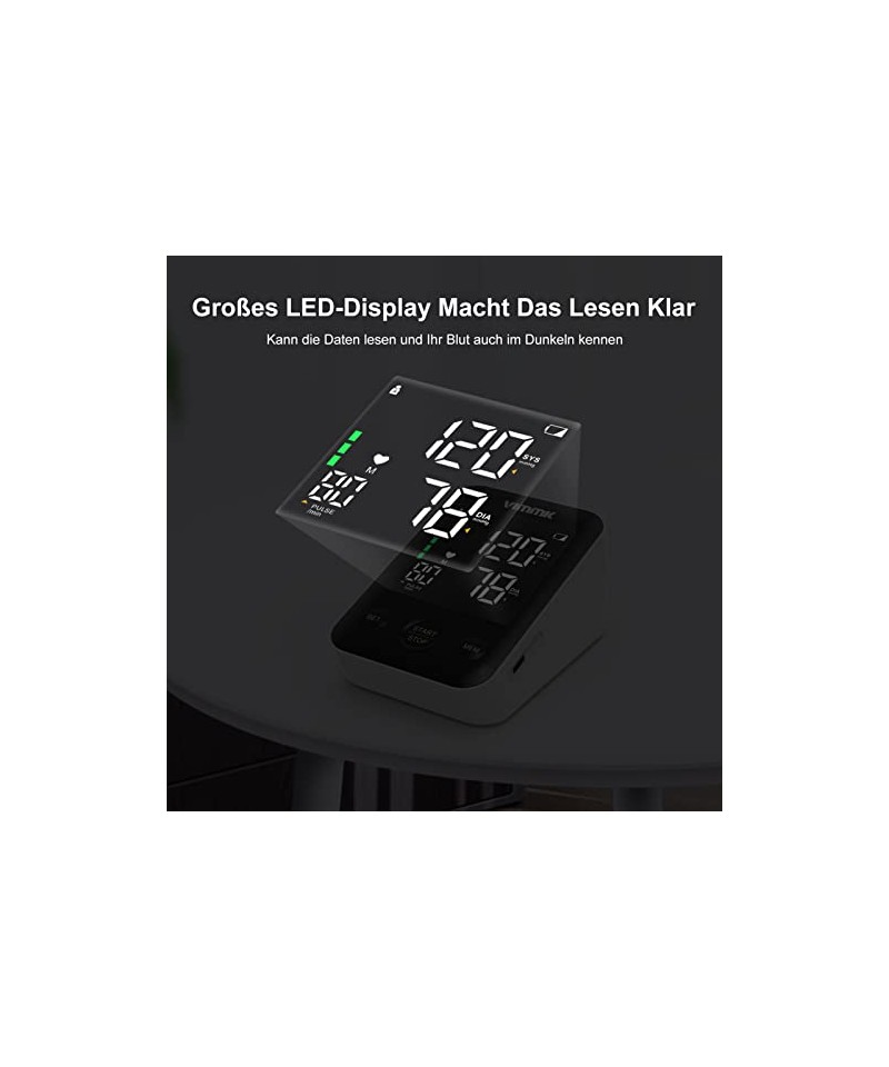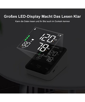 Ecranul LED mare face citirea clară: Purtați manșeta corect, adoptați postura corectă de măsurare, o singură operare cu un buton, apăsați butonul de pornire, apoi tensiunea arterială sistolică și diastolică și pulsul sunt afișate pe ecran. Designul mare cu iluminare de fundal LED permite citirea clară a valorilor pe ecran chiar și pe întuneric, ceea ce este foarte potrivit pentru persoanele în vârstă.