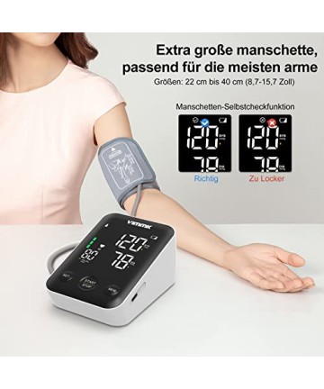 Manșetă reglabilă îmbunătățită: Materialul moale, designul manșetei extinse (22-40 cm) și tehnologia inteligentă de aplicare a presiunii asigură o experiență plăcută.