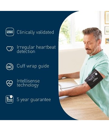 MANSETA INTELLI WRAP: această manșetă preformată pentru partea superioară a brațului, cu dimensiuni de 22-42 cm, elimină problema poziționării manșetei și asigură citiri precise în orice poziție