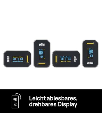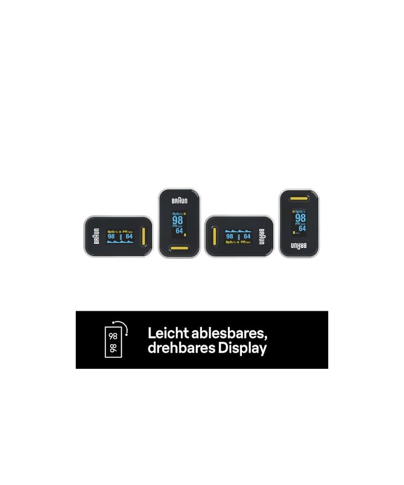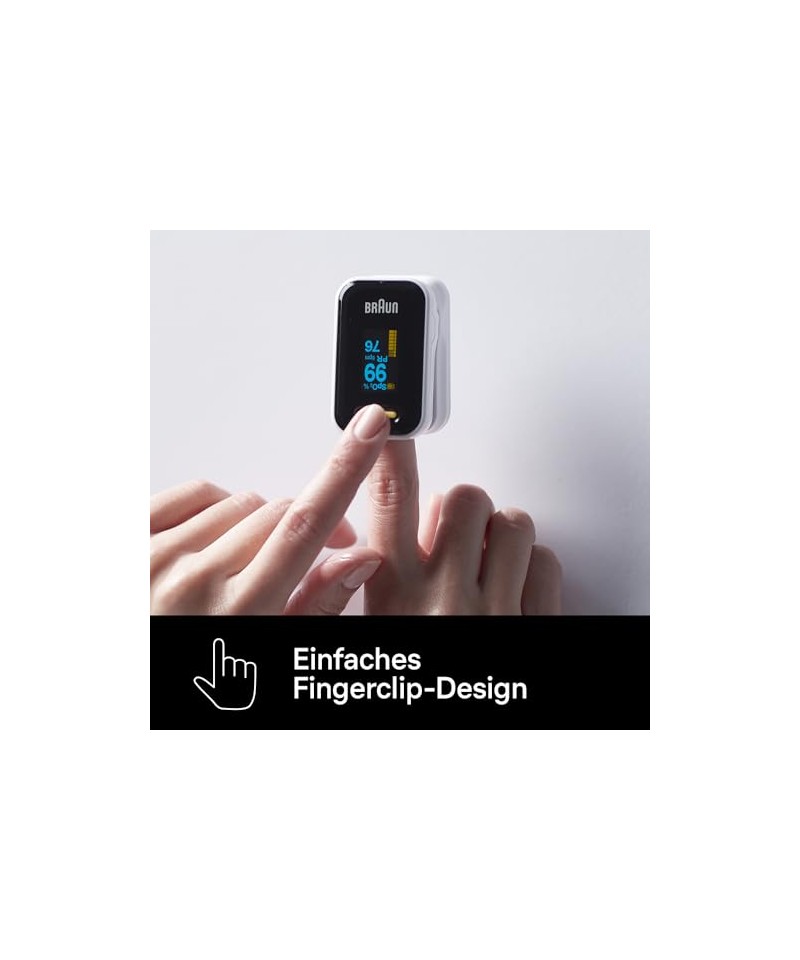 Clema de deget ușor de utilizat: acuratețe ușoară - cu o clemă de deget confortabilă și ușoară; mulțumită funcționării simple cu un singur buton, obțineți rezultate clinic fiabile; Pulsoximetrul nostru Braun 1 este echipat cu un șnur, o oprire automată după opt secunde de inactivitate și două baterii AAA.