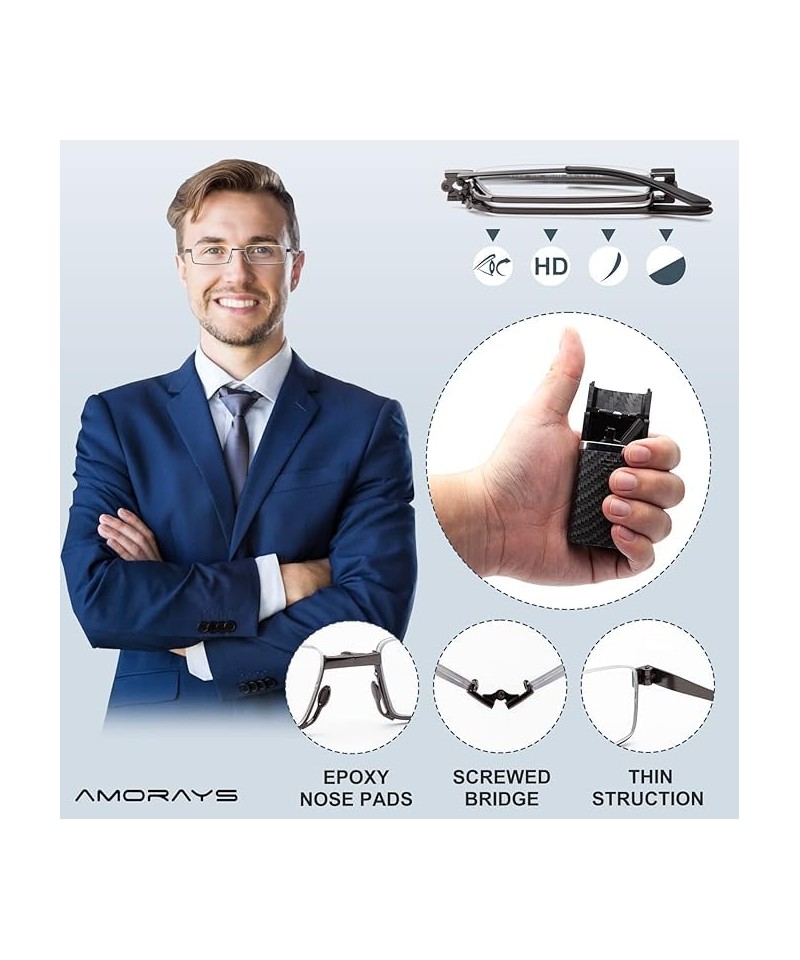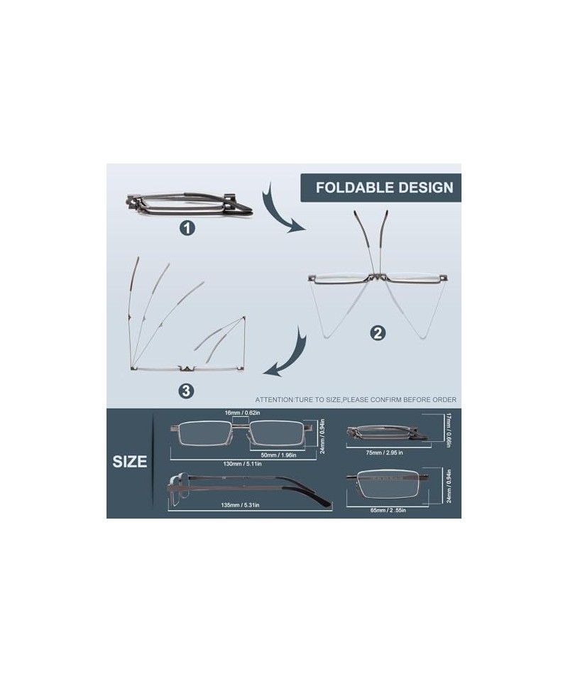 Ochelari de lectură pliabili din metal: această ramă de ochelari pliabilă și portabilă este fabricată din metal de înaltă calitate, fiind mai confortabilă de purtat și mai elegantă în design.