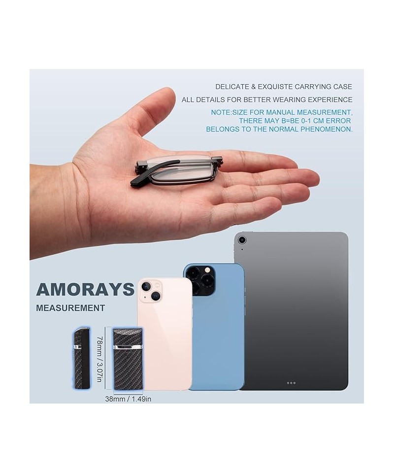Toc pentru ochelari cu închidere tip push-up: ochelarii de lectură mici vin cu un mini toc rigid, un toc pentru ochelari cu închidere tip push-up. Ușor de transportat. Puteți pune ochelarii portabili în geanta sau buzunarul dumneavoastră și îi puteți folosi oricând, tocul pentru ochelari cu închidere tip push-up vă protejează montura în timpul deplasărilor.