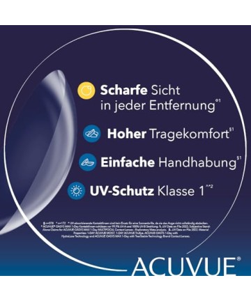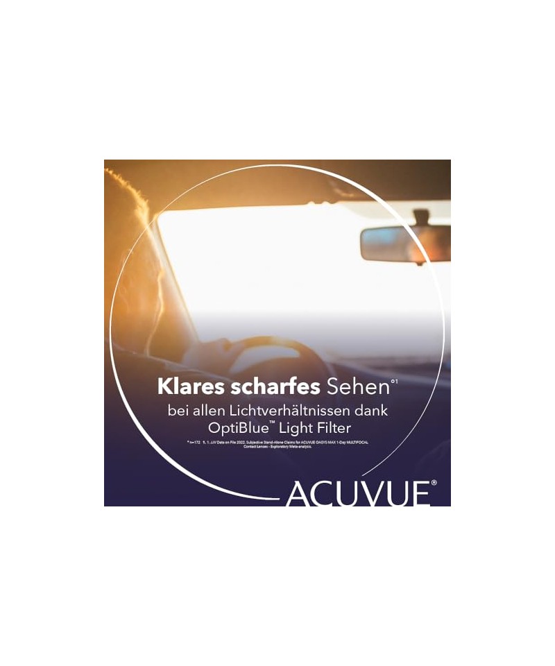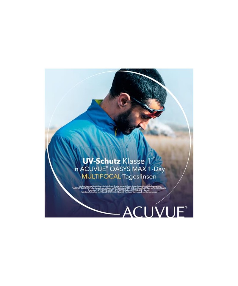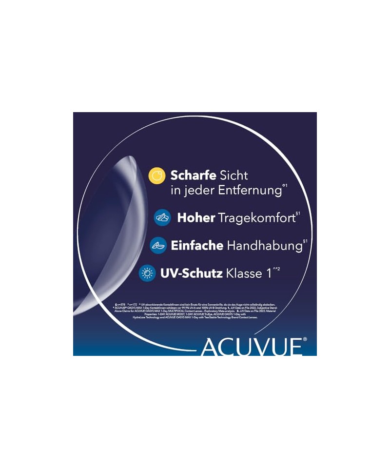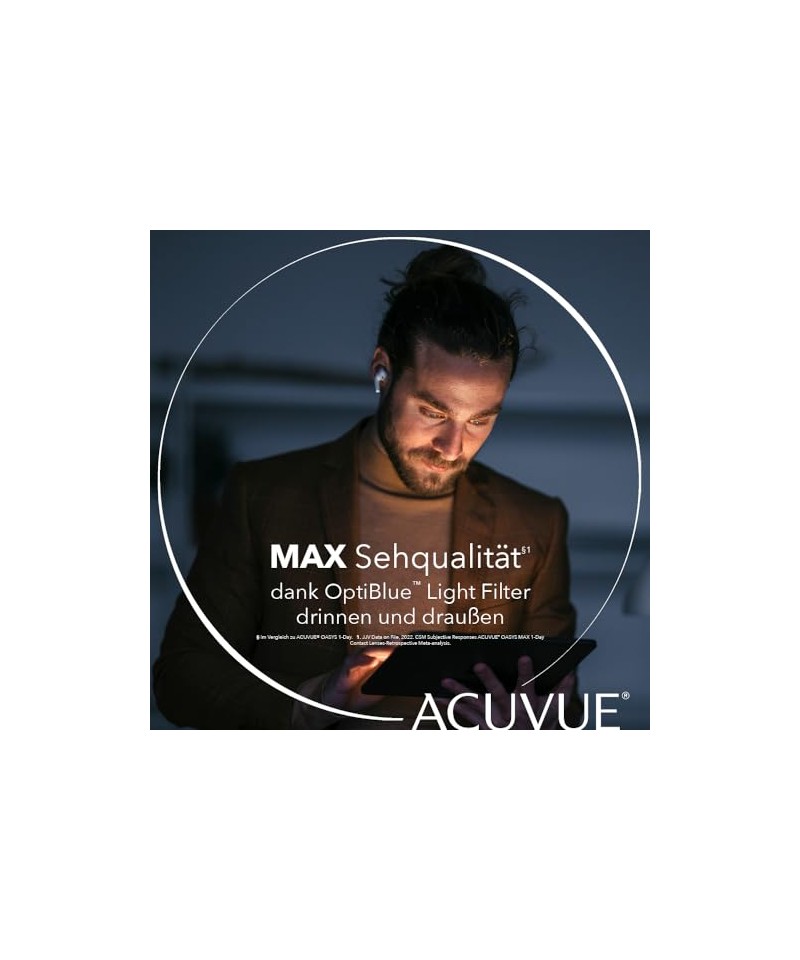 Conținutul cutiei: 30 de lentile de contact Acuvue Oasys Max 1-day multi-focale moi, zilnice / +4.00 dpt și BC 8.4 / cu marcaj de manipulare, care ajută la detectarea inversării lentilei.