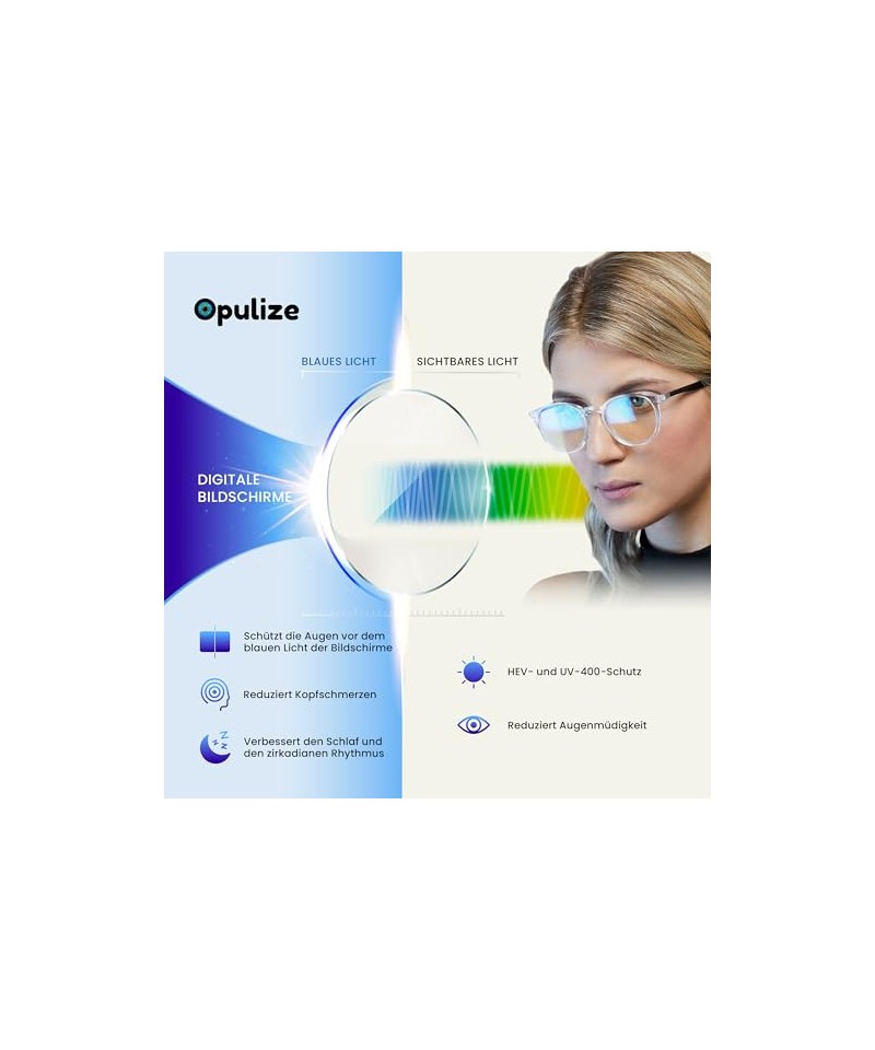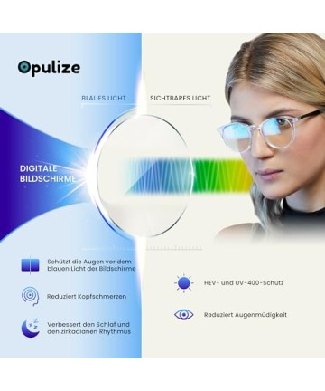 Calitate și stil: ochelarii Opulize cu filtru de lumină albastră oferă o valoare incredibilă pentru bani și în același timp se bazează pe design modern. Un cadru elegant și rotund cu branțuri contrastante și detalii elegante din metal.