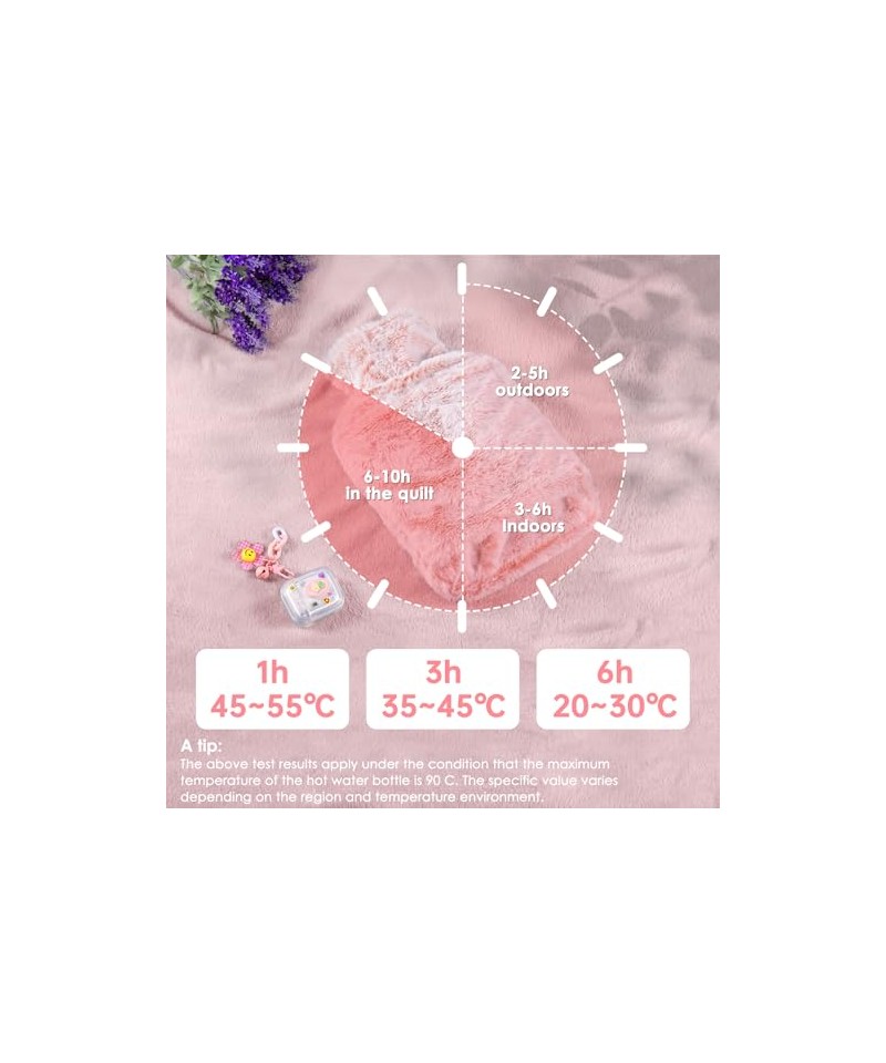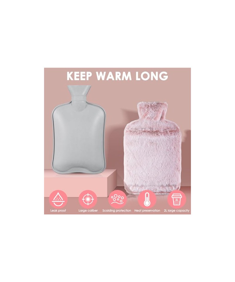 【PĂSTREAZĂ CALD PENTRU MULT TIMP】Borsa cu apă caldă de 2L are un capac moale luxos, o capacitate mare și un capac exterior gros care îi permite să elibereze căldura pentru o perioadă foarte lungă de timp.