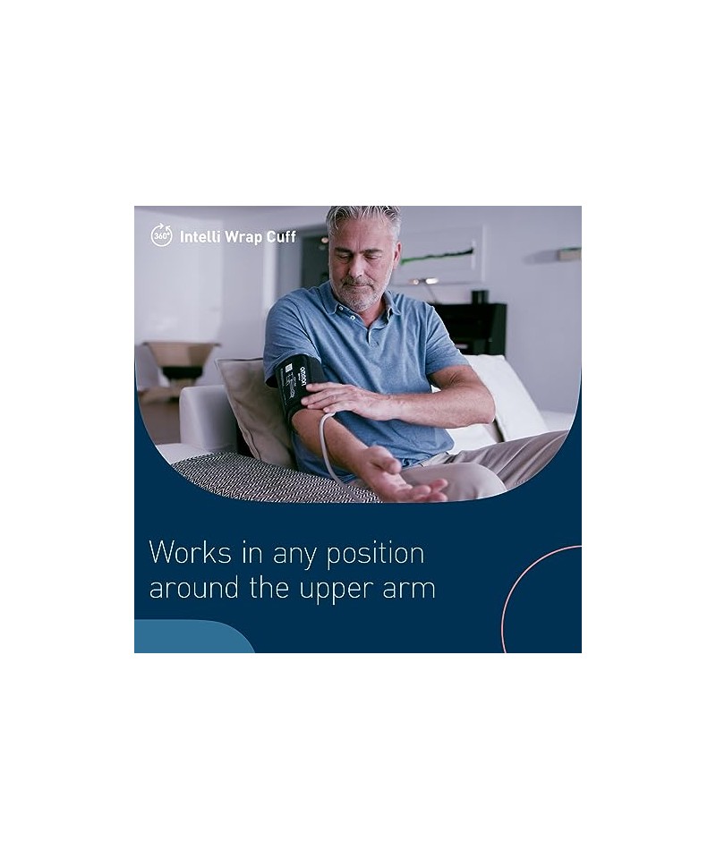 MANSETA INTELLI WRAP: această manșetă preformată pentru partea superioară a brațului, cu dimensiuni de 22-42 cm, elimină problema poziționării manșetei și asigură citiri precise în orice poziție