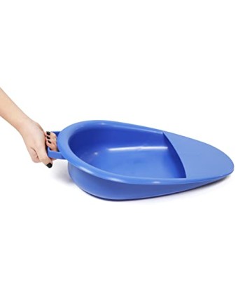 DESIGN ÎNCLINAT: Designul înclinat al tăvii de pat previne scurgerile și are un recipient circular practic cu o capacitate de 2 litri. În plus, are o mâner care ușurează poziționarea tăvii de pat.