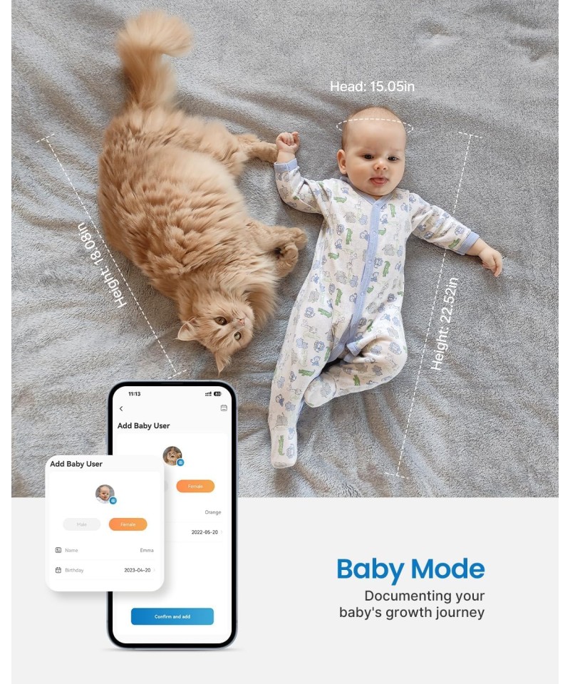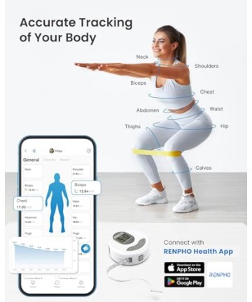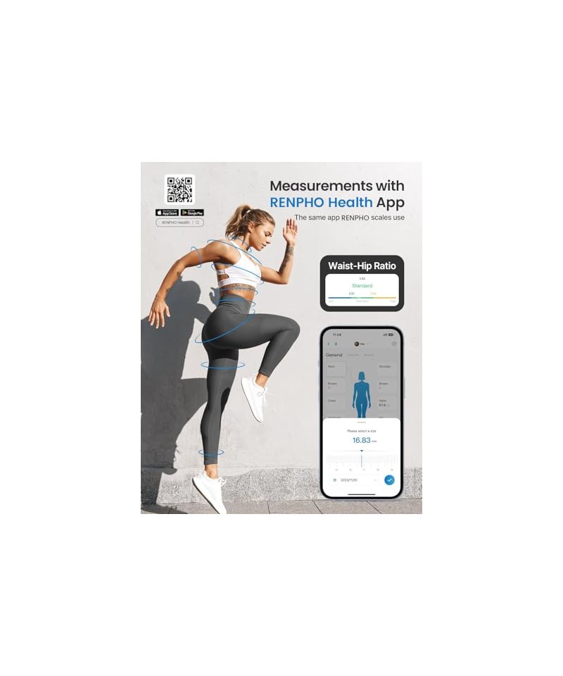 Utilizatori și posibilități nelimitate: Cu aplicația Renpho Health, dispozitivul de măsurare a grăsimii corporale cu bandă digitală inteligentă poate accepta un număr nelimitat de utilizatori. Utilizați banda digitală inteligentă pentru a înregistra modificările corpului în orice moment și în orice loc și aflați cum să alegeți hainele care vă avantajează cel mai bine și vă pun în valoare formele naturale. Rămâneți în fruntea obiectivelor de fitness și vedeți progresele pe care le-ați realizat cu RENPHO!