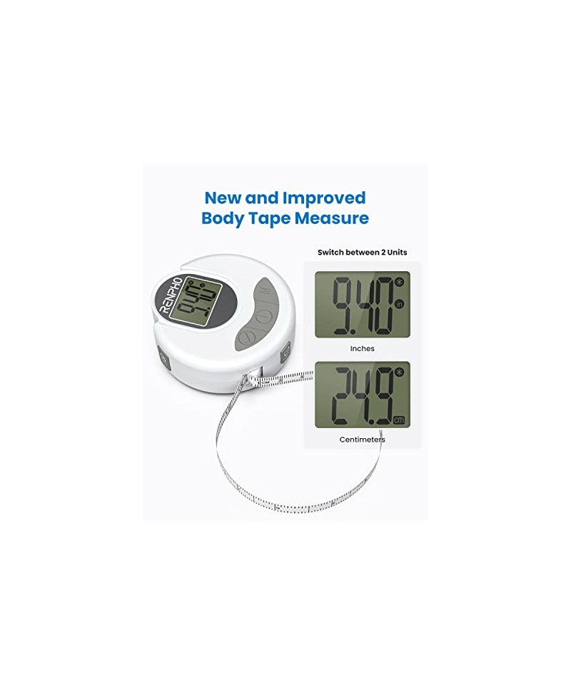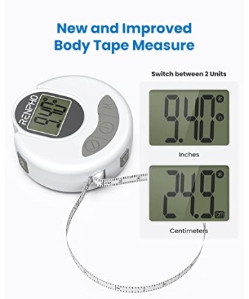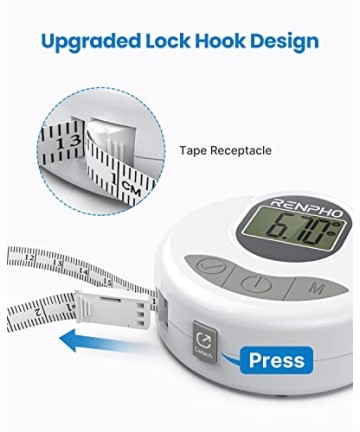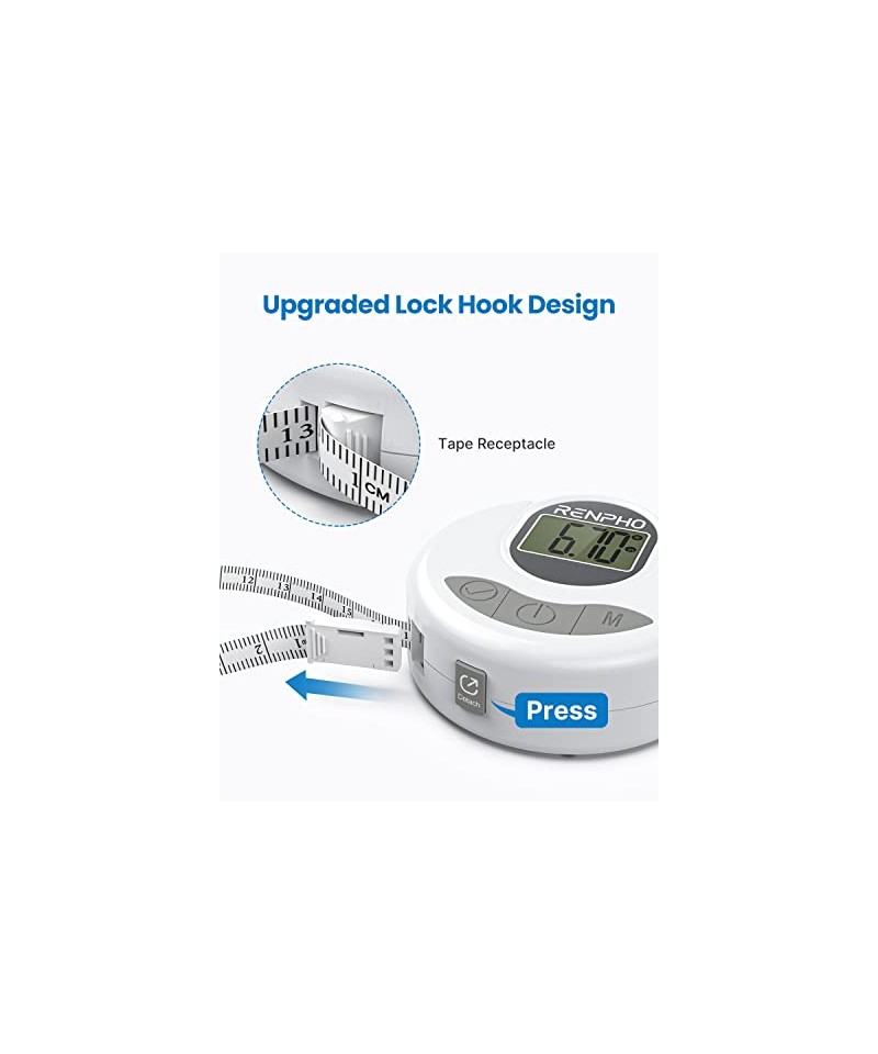 Bandă de măsurare a corpului compactă și portabilă pe două fețe: Ruleta inteligentă de măsurare a corpului Renpho este ușoară și compactă, ușor de transportat în geanta de sport sau bagaj, asigurându-vă că puteți măsura și urmări modificările corpului dvs. oriunde v-ați afla. Banda inteligentă poate măsura până la 60 inch/150 cm, iar afișajul poate citi până la 63 inch/160 cm cu precizie.