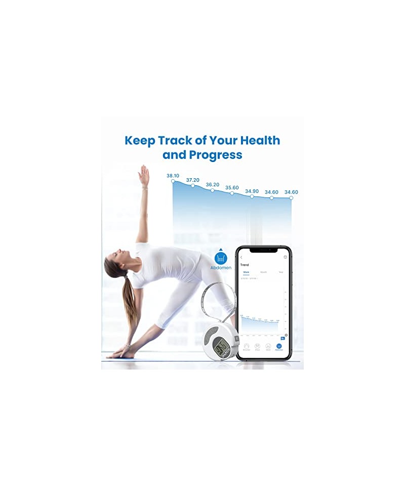 Aplicație largă: Modalitatea ușoară de a ține evidența modificărilor corpului dvs.! Cu măsurători disponibile pentru bicepși, gambe, șolduri, coapse, talie, umeri, bust, gât și abdomen, puteți monitoriza cu precizie transformarea totală a corpului în timp. Această bandă de măsurare Bluetooth este perfectă pentru antrenorii profesioniști, entuziaștii fitness, cei care doresc să câștige în masă musculară, grupurile care slăbesc și chiar și pentru mămicile în așteptare.