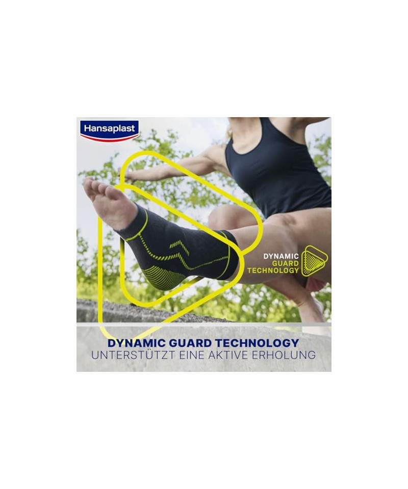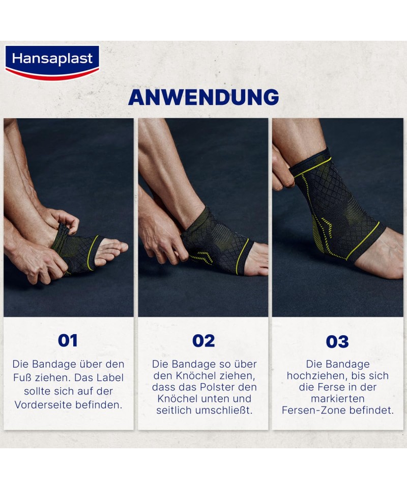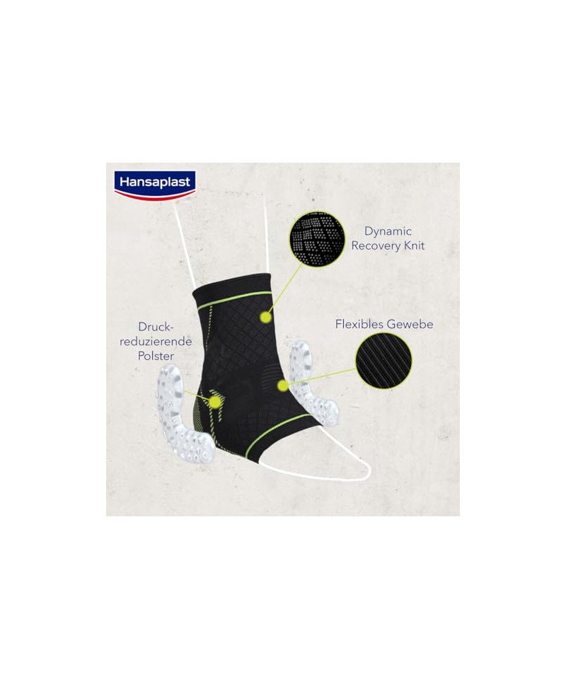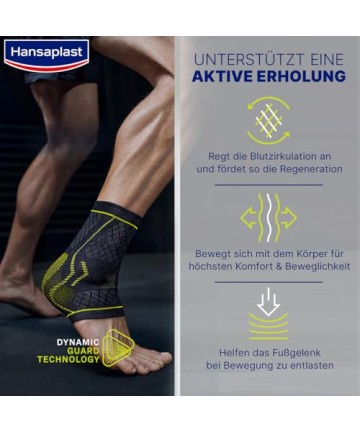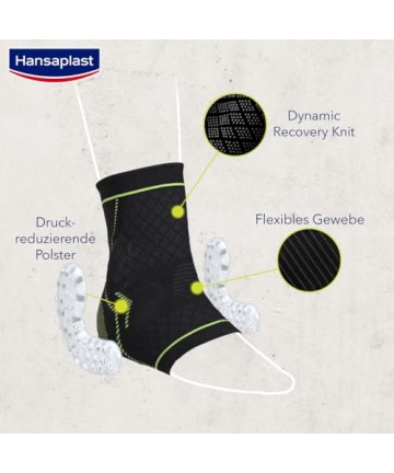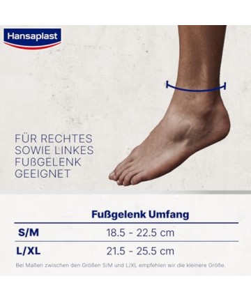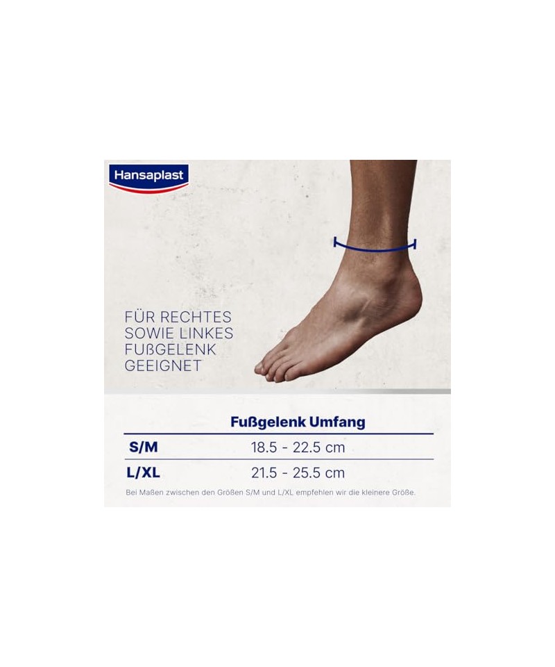 Conținutul cutiei și detalii - 1 x Suport pentru gleznă Hansaplast pentru gleznă, poate fi folosit la stânga și la dreapta.
