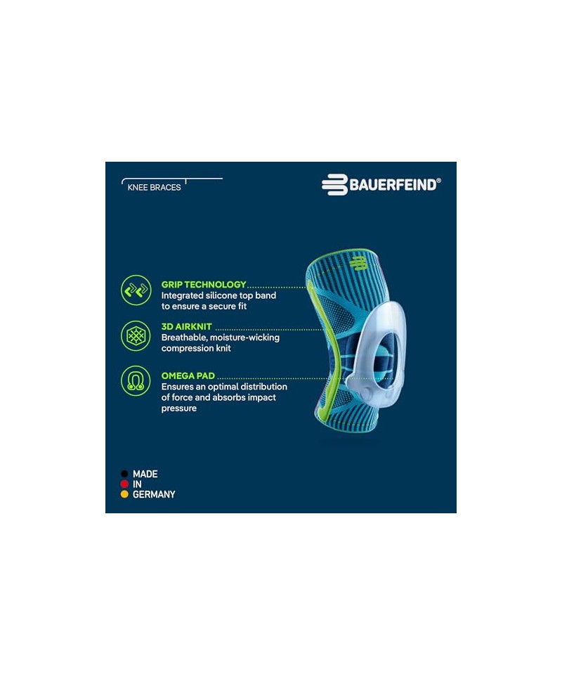 Conținutul cutiei: 1 x suport pentru genunchi cu ambalaj, tehnologie 3D Airknit, poliamidă/elastan, cod material: 4057532279486. Fabricat în Germania.