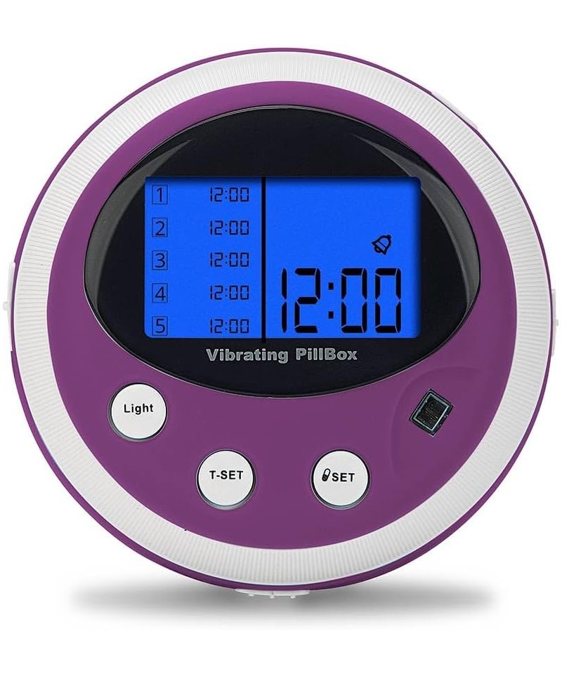 Cutie de pastile cu 5 compartimente pentru medicamente, 5 ore de alarmă, reglabile pentru fiecare compartiment de pastile