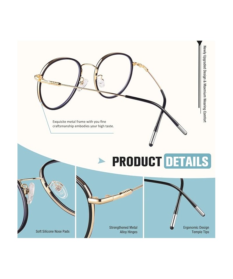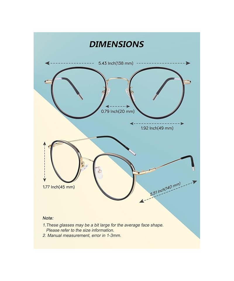 DESIGN CIRCULAR ȘASIU SIMPLIFICAT - Stilul ramei rotunde drăguț și elegant, combină elementul decorativ, perfect pentru utilizatorii ocazionali care își doresc protecție pentru ochi și ochelari la modă, te face mai la modă și îți arată carisma personală. DIMENSIUNILE PRODUSULUI – Lățimea lentilei: 49 mm (1,93 inci) – Înălțimea lentilei: 41 mm (1,61 inci) – Lungimea brațelor: 135 mm (5,31 inci) – Puntea nazală: 20 mm (0,79 inci)