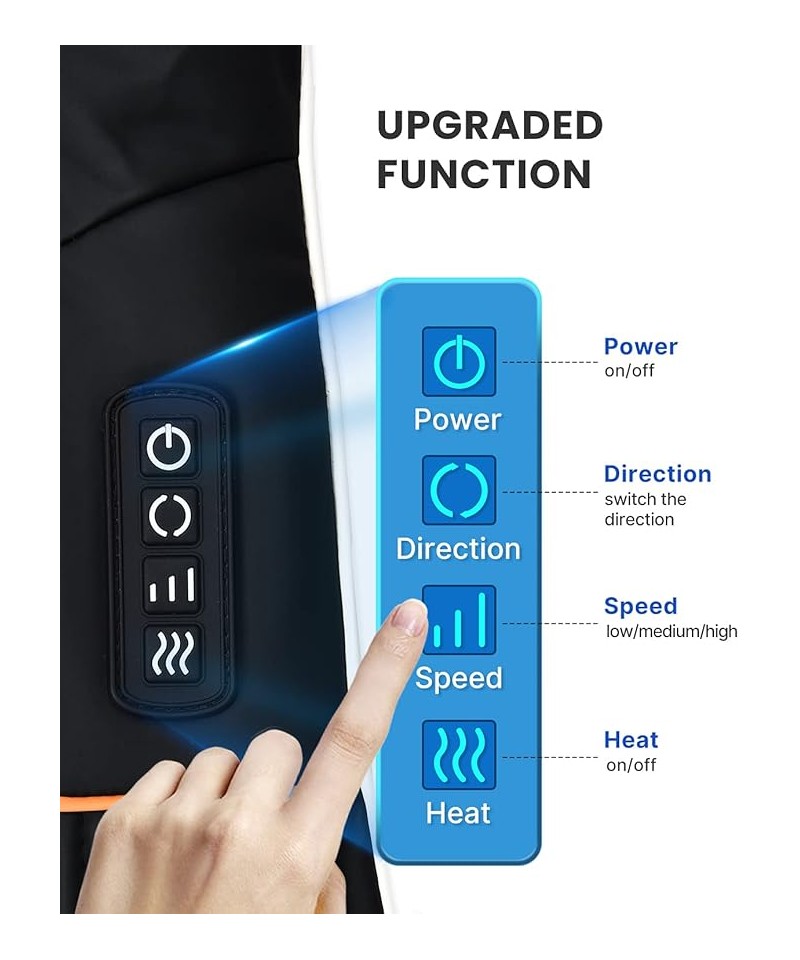 Acest aparat de masaj pentru gât shiatsu poate fi utilizat pe gât, umeri, spate, picioare, coapse, gambe și labe ale picioarelor.