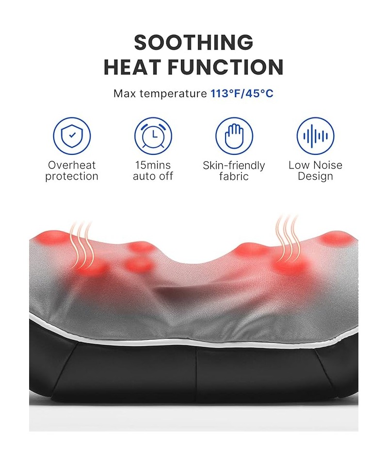 Aparatul de masaj shiatsu folosește un motor din cupru de înaltă calitate. Oprirea automată în 15 minute previne supraîncălzirea. Pielea PU impermeabilă și respirabilă este durabilă și ușor de curățat.