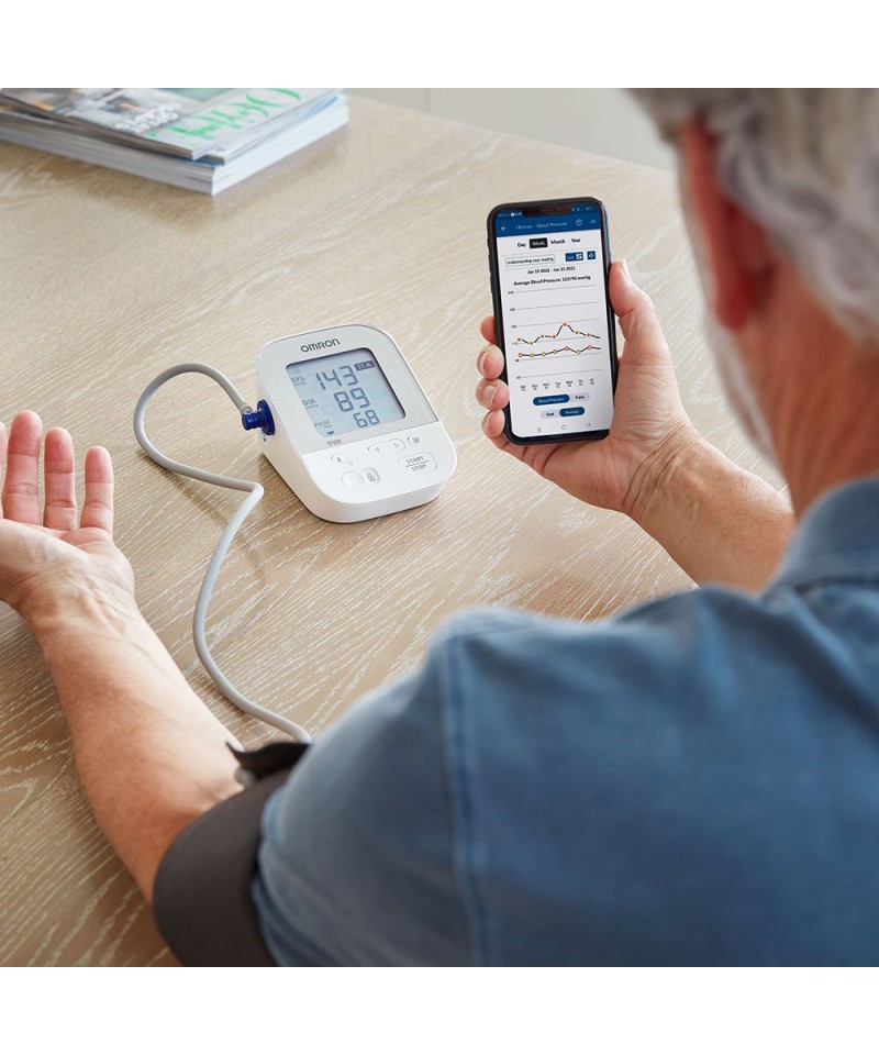 Omron X4 Smart transmite automat rezultatele către smartphone prin Bluetooth, astfel încât valorile tensiunii arteriale în orice momentpot fi citite în aplicația Omron connect.