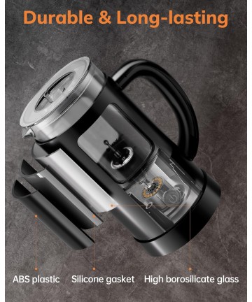 - Material: Sticlă borosilicată alimentară, rezistentă la temperaturi ridicate și la șocuri termice