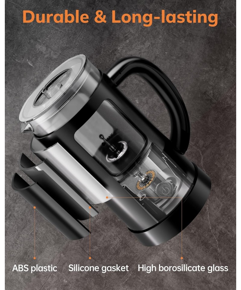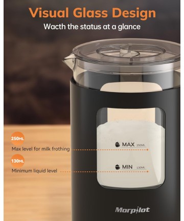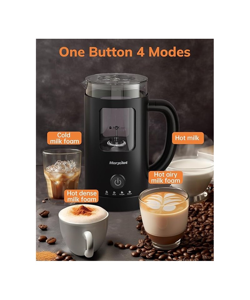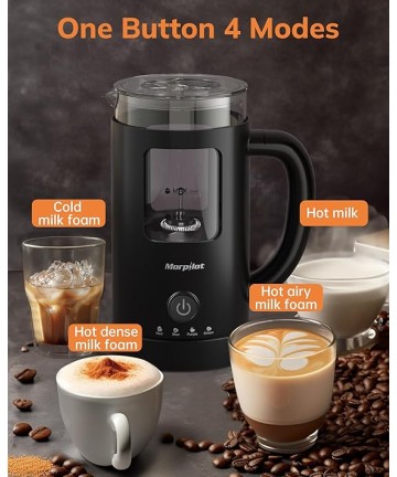 Aparat de spumat lapte MORPILOT 4 in 1, negru, sticla vizuala, 600 ml