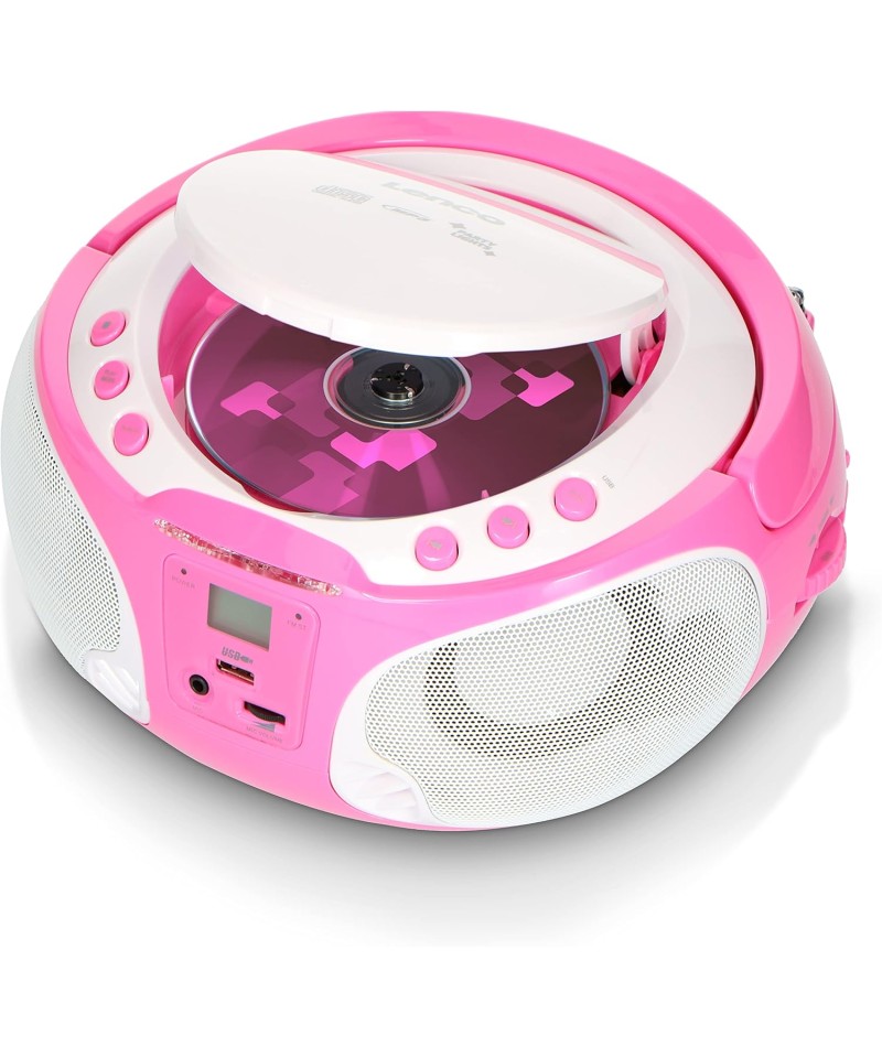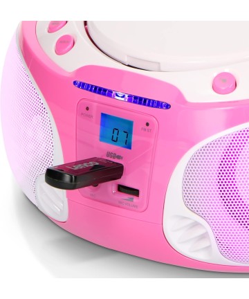 Radio portabil cu CD, USB, roz, Lenco SCD-650