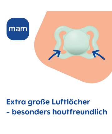 Extra delicată cu pielea - Forma curbată asigură un confort maxim și, datorită orificiilor de aer deosebit de mari și a unui scut rotunjit, suzeta din silicon este extrem de prietenoasă cu pielea sensibilă a bebelușului.