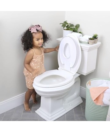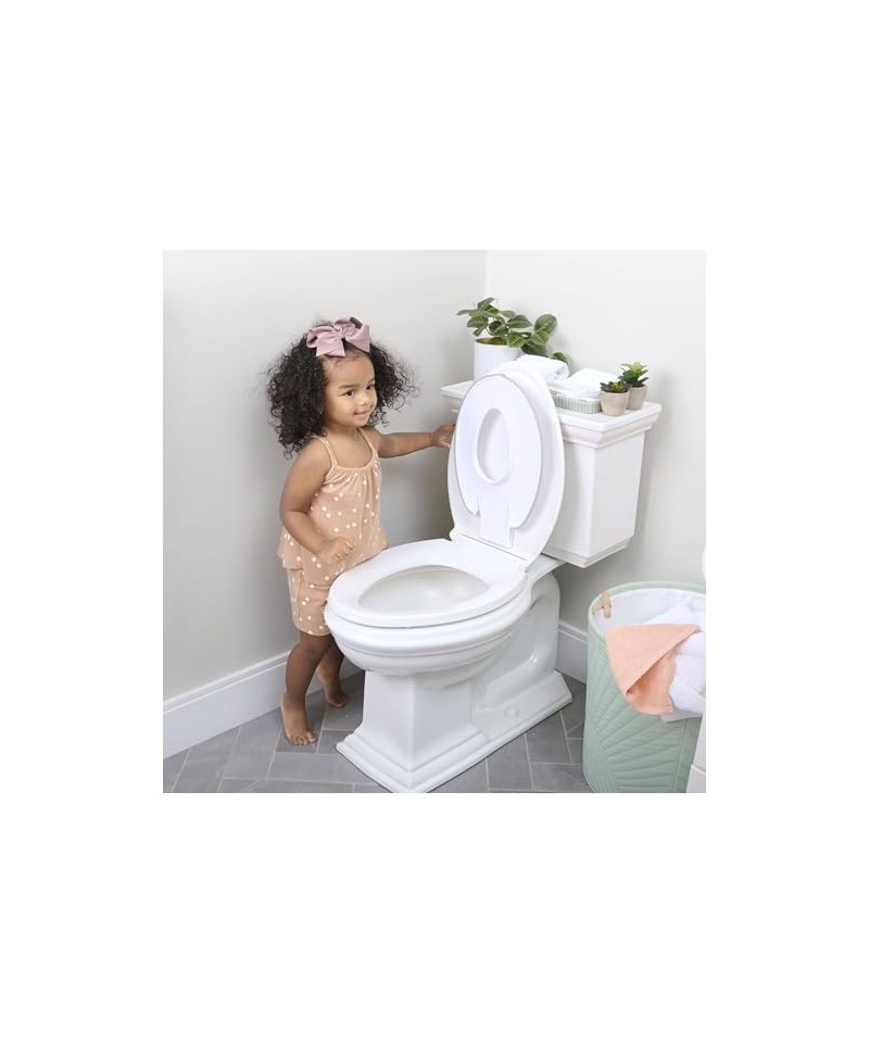 Acest scaun semipermanent permite adulților să continue să folosească toaleta cu ușurință în timpul antrenamentului la olită al copiilor; pur și simplu ridicați-l și detașați-l astfel încât să se potrivească perfect în capacul de toaletă.
