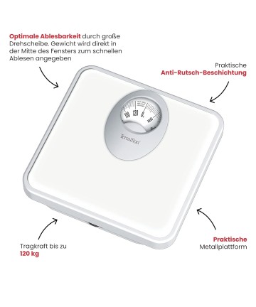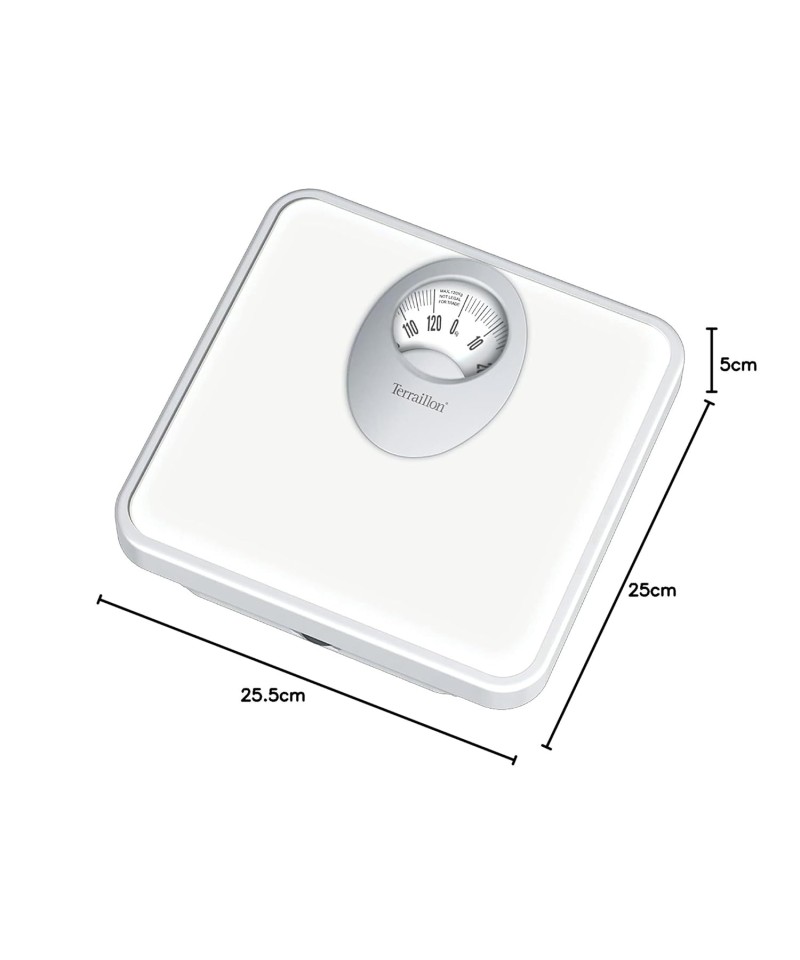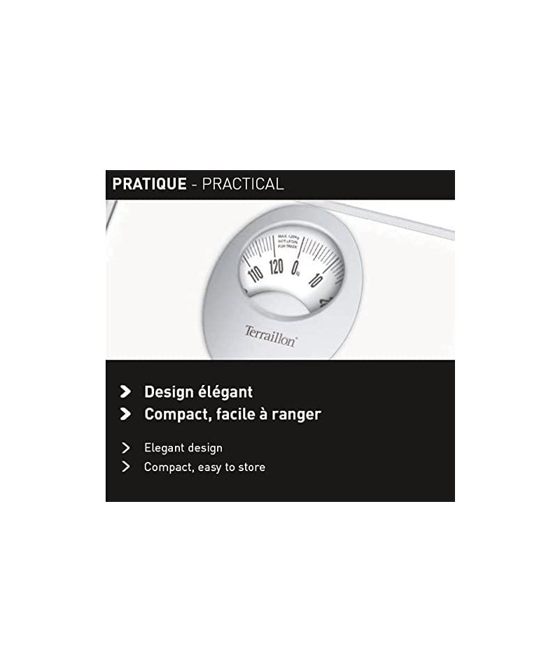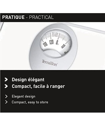 Cântar mecanic corporal TERRAILLON - afișaj mare, suprafață metalică de cântărire, max. 120 kg – Model „T61” alb