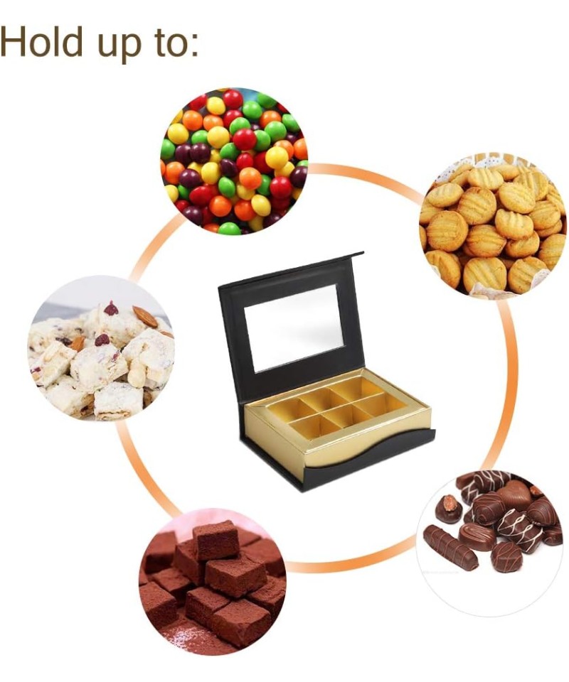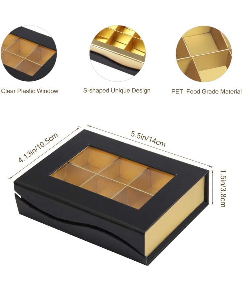Design unic al cadoului: Există o fereastră transparentă în partea de sus a cutiilor goale negre de ciocolată, ceea ce face ca fiecare cadou să fie cu adevărat unic. Ciocolata sau prăjiturile gustoase pot fi vizualizate cu ușurință prin fereastra superioară. Îți poți pulveriza imaginația și creativitatea asupra ei, făcând cadoul tău unic și mai romantic.