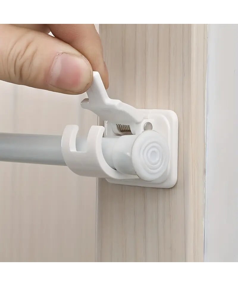 Doar împingeți tija perdelei în suport, aceasta va fi blocată în clema de plastic.