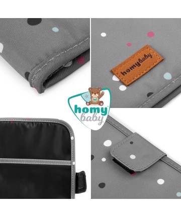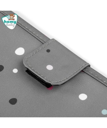 Organizatorul de documente are mai multe compartimente: 5 sloturi (3 pentru carduri și 2 pentru documente). Buzunarele sale sunt transparente pentru a facilita găsirea a ceea ce doriți. Proiectat cu închidere Velcro, super sigur, care nu permite nimic să alunece din ceea ce este depozitat în interiorul trusei de toaletă pentru nou-născuți.