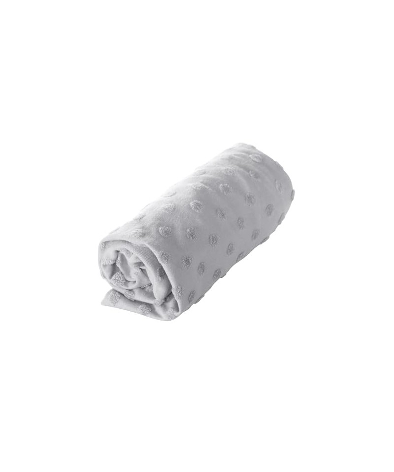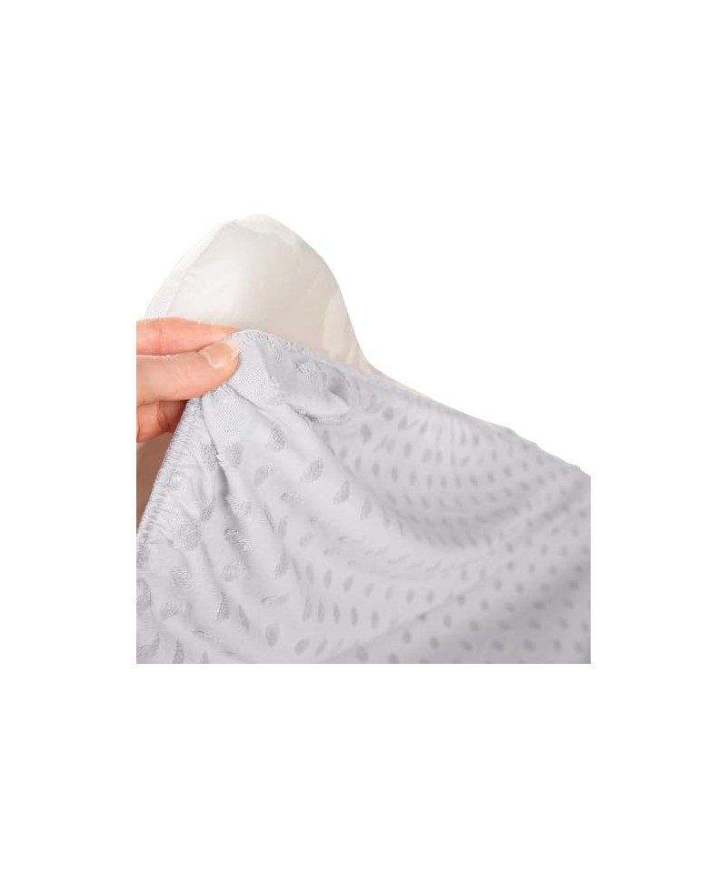 Husa modelată este lavabilă la 40°C în mod ecologic. Jerseu cu buline din bucle, 80% bumbac organic GOTS, 20% poliester. Dimensiuni: 75 x 85 cm, culoare: gri argintiu