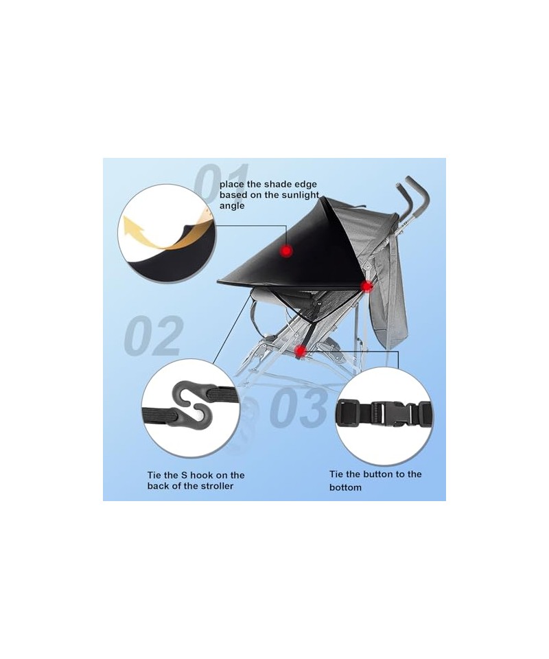 Aplicație largă: cu design de cataramă și cârlig, foarte ușor de instalat și potrivit pentru aproape toate cărucioarele, inclusiv cărucioare împinse. Gamă largă de aplicații: cu design de cataramă și cârlig, foarte ușor de instalat și potrivit pentru cărucioare mici, inclusiv cărucior cu umbrelă generală, cărucior cu glugă înaltă, cărucior din ratan etc. Acest lucru o face perfectă pentru activitățile în aer liber pe tot parcursul anului.